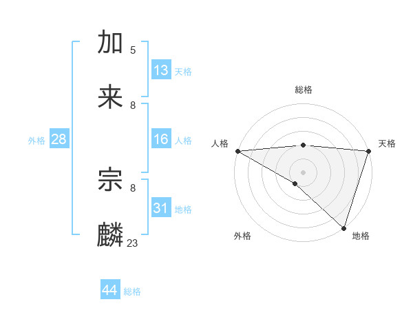 加来 宗麟さんの天格は13画の5点!