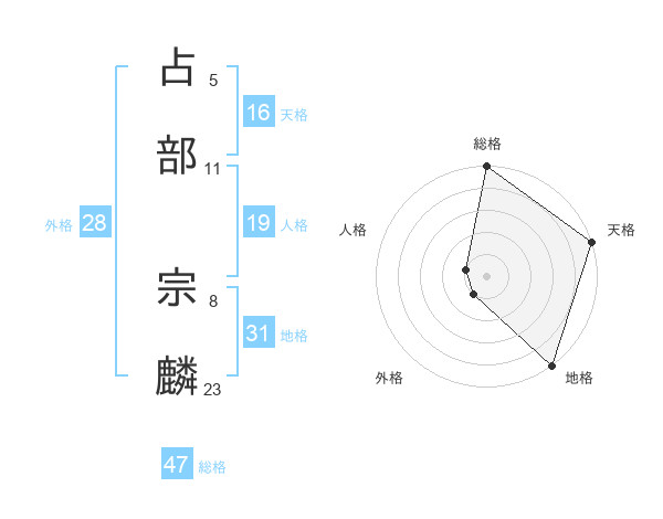 占部 宗麟さんを姓名の画数から五運を鑑定