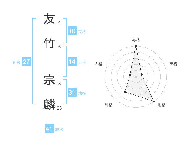 友竹 宗麟さんの総格は41画の5点!