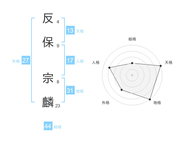 反保 宗麟さんの天格は13画の5点!