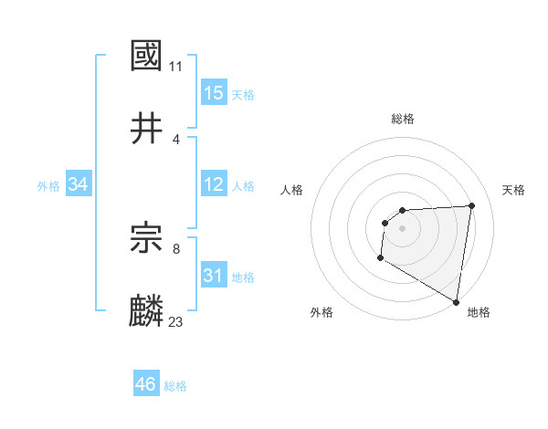 國井 宗麟さんの天格は15画の4点!