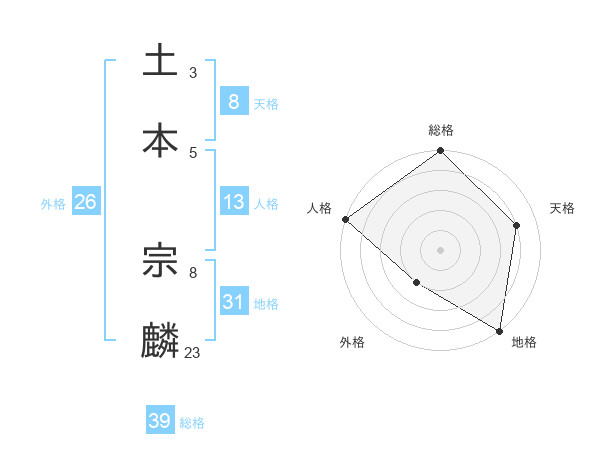 土本 宗麟さんの総格は39画の5点!
