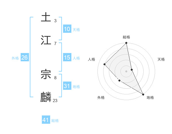 土江 宗麟さんの総格は41画の5点!