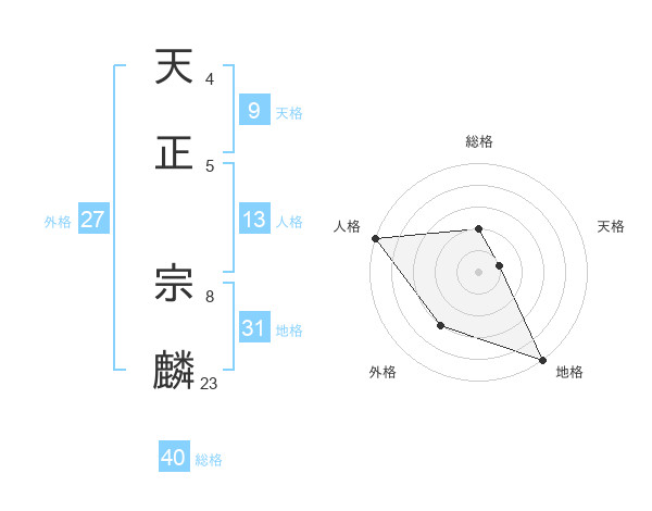 天正 宗麟さんの総格は40画の2点!