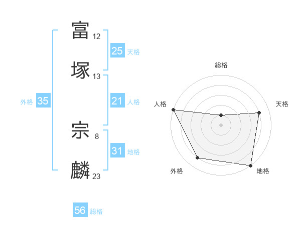 富塚 宗麟さんを姓名の画数から五運を鑑定