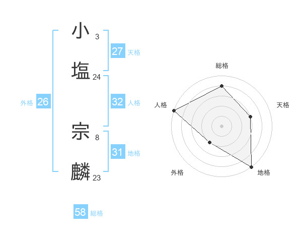 小塩 宗麟さんを姓名の画数から五運を鑑定