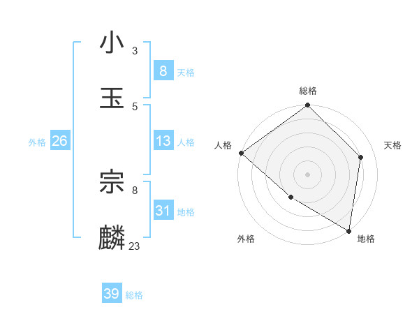 小玉 宗麟さんの総格は39画の5点!