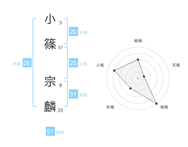 小篠 宗麟さんの天格は20画の1点!