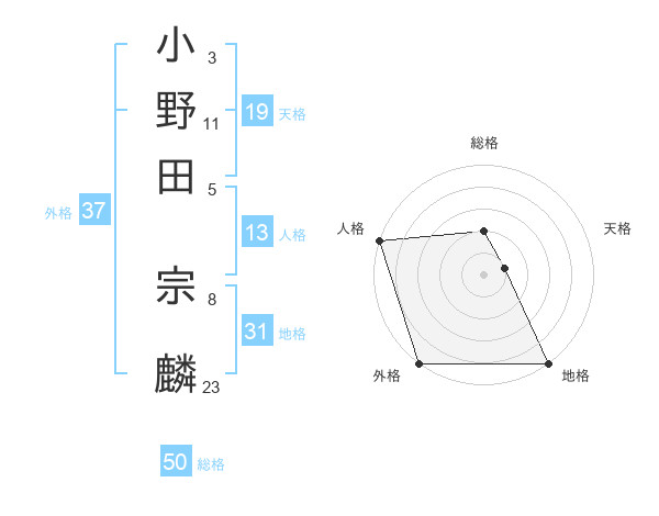 小野田 宗麟さんを姓名の画数から五運を鑑定
