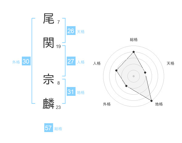 尾関 宗麟さんの天格は26画の2点!
