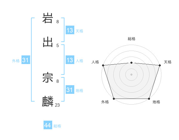 岩出 宗麟さんを姓名の画数から五運を鑑定
