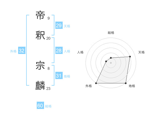 帝釈 宗麟さんの外格は32画の5点!