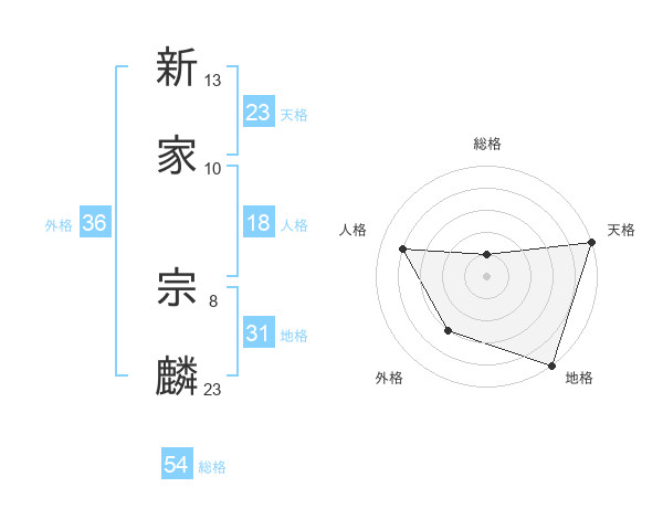 新家 宗麟さんの天格は23画の5点!