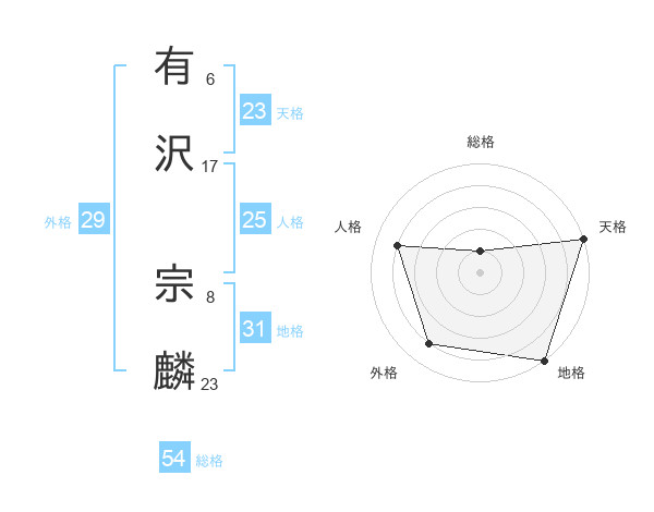 有沢 宗麟さんの天格は23画の5点!
