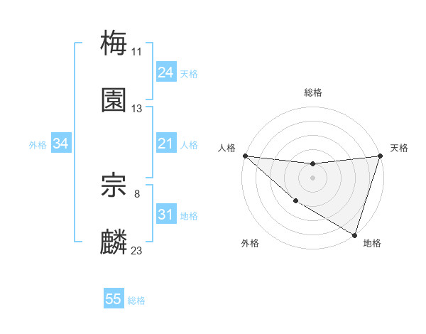 梅園 宗麟さんの総格は55画の1点!