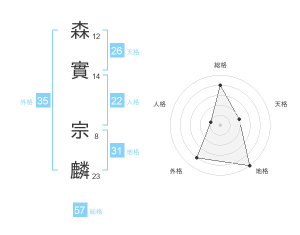 森實 宗麟さんを姓名の画数から五運を鑑定