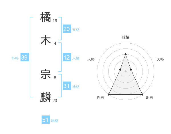 橘木 宗麟さんの総格は51画の3点!