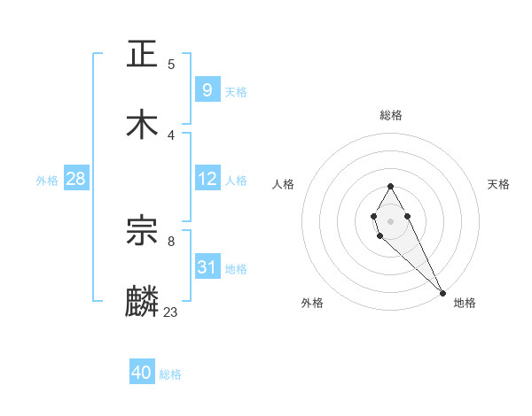正木 宗麟さんを姓名の画数から五運を鑑定