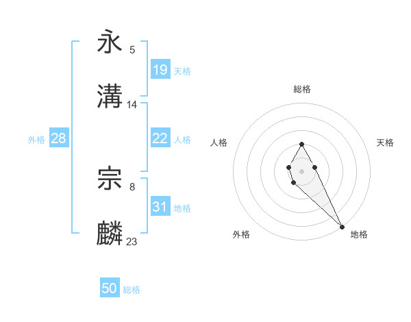 永溝 宗麟さんを姓名の画数から五運を鑑定
