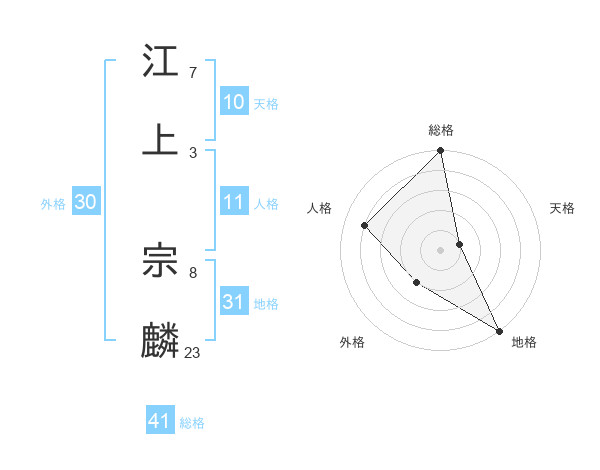 江上 宗麟さんを姓名の画数から五運を鑑定