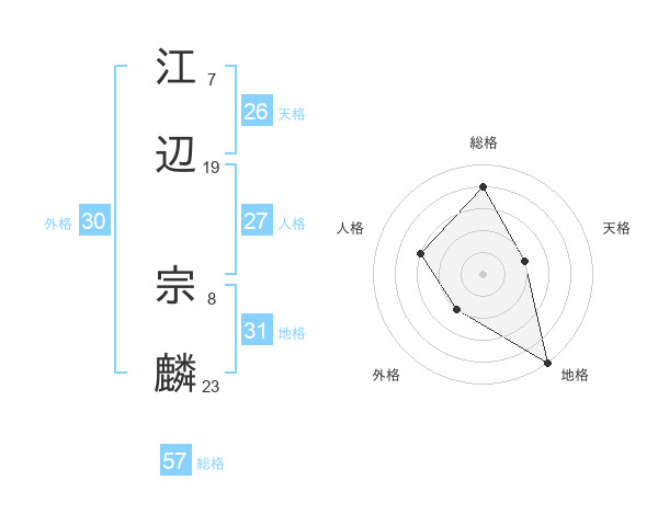 江辺 宗麟さんを姓名の画数から五運を鑑定