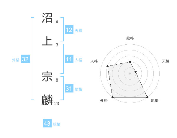 沼上 宗麟さんを姓名の画数から五運を鑑定