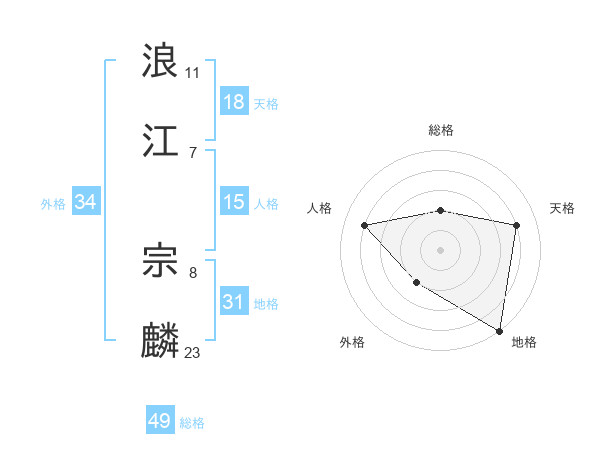 浪江 宗麟さんを姓名の画数から五運を鑑定