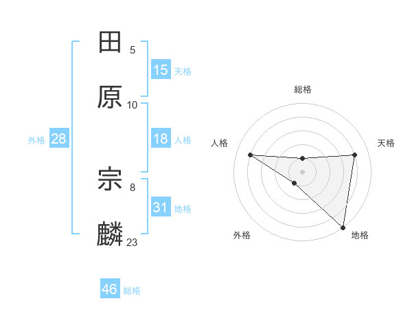 田原 宗麟さんの総格は46画の1点!