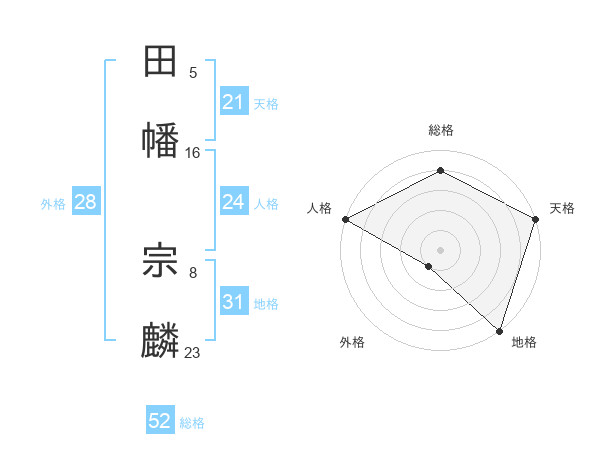 田幡 宗麟さんを姓名の画数から五運を鑑定