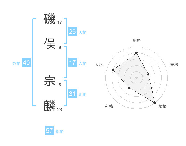 磯俣 宗麟さんの総格は57画の4点!