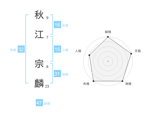 秋江 宗麟さんを姓名の画数から五運を鑑定