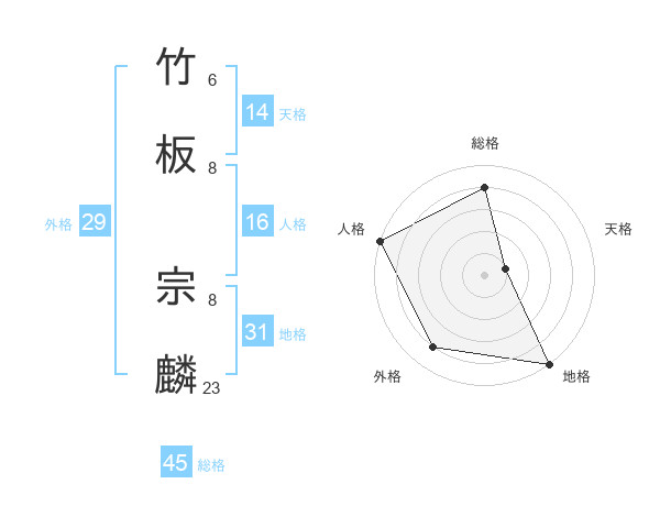 竹板 宗麟さんを姓名の画数から五運を鑑定