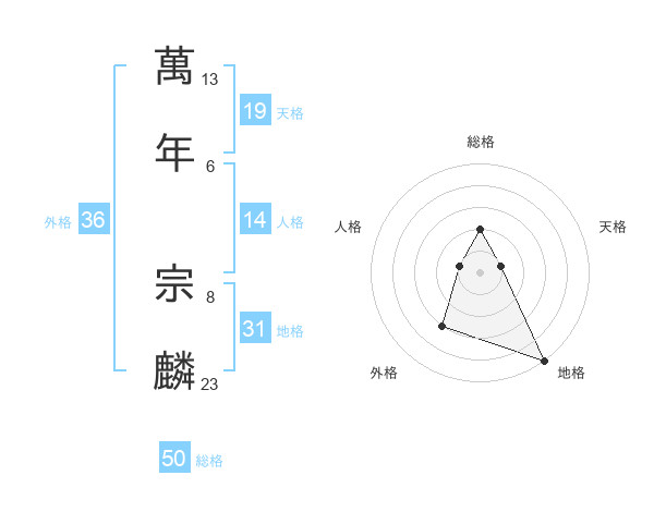 萬年 宗麟さんを姓名の画数から五運を鑑定