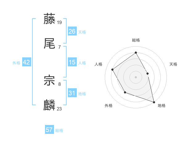 藤尾 宗麟さんの総格は57画の4点!