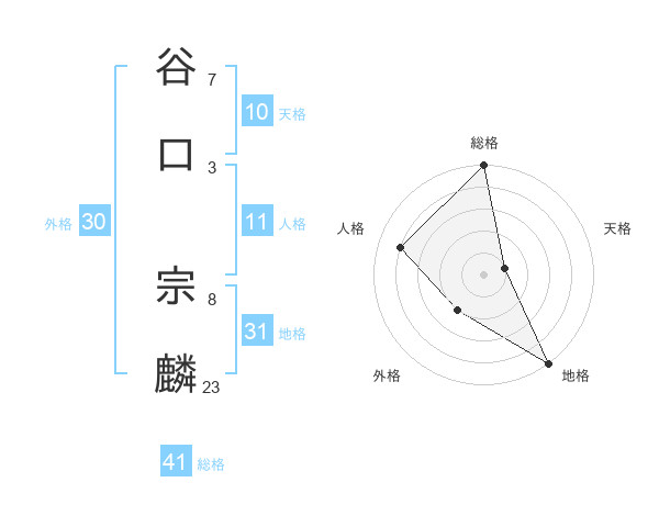 谷口 宗麟さんの総格は41画の5点!