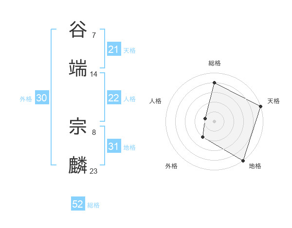 谷端 宗麟さんを姓名の画数から五運を鑑定