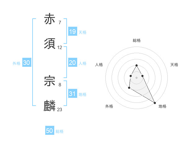 赤須 宗麟さんの総格は50画の2点!