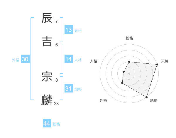辰吉 宗麟さんを姓名の画数から五運を鑑定