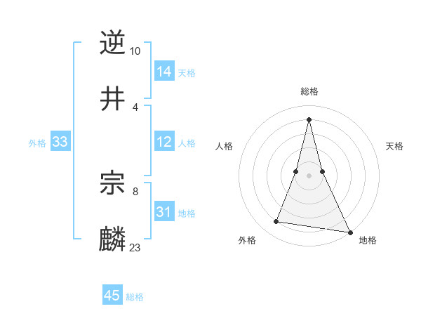 逆井 宗麟さんを姓名の画数から五運を鑑定
