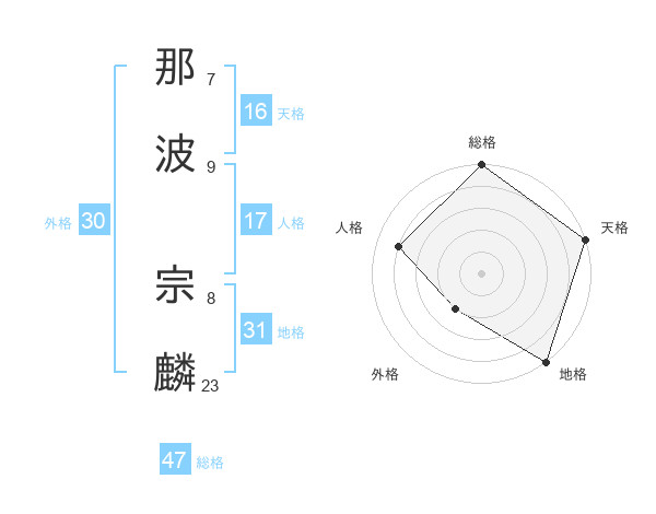 那波 宗麟さんの総格は47画の5点!