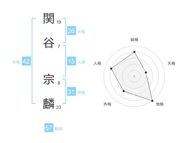 関谷 宗麟さんの総格は57画の4点!