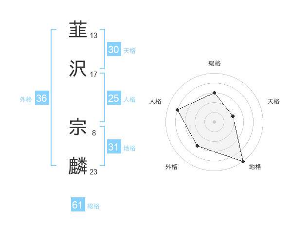 韮沢 宗麟さんの総格は61画の3点!