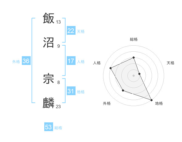 飯沼 宗麟さんの総格は53画の3点!