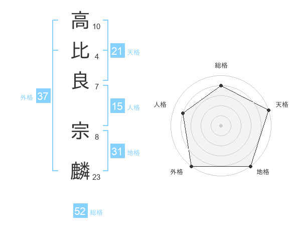 高比良 宗麟さんを姓名の画数から五運を鑑定