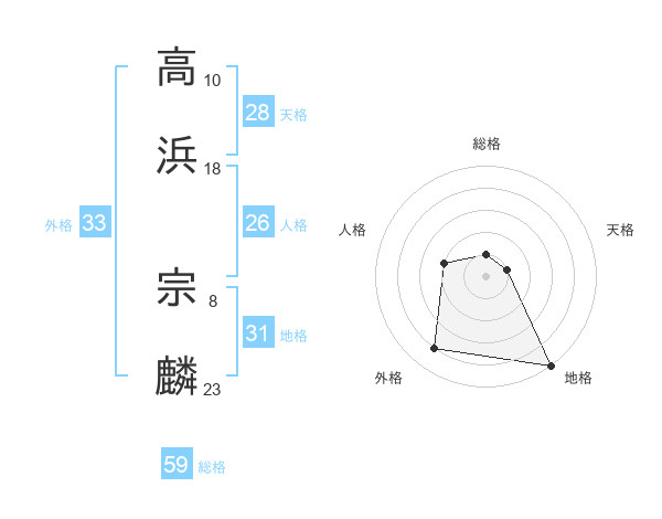 高浜 宗麟さんの総格は59画の1点!