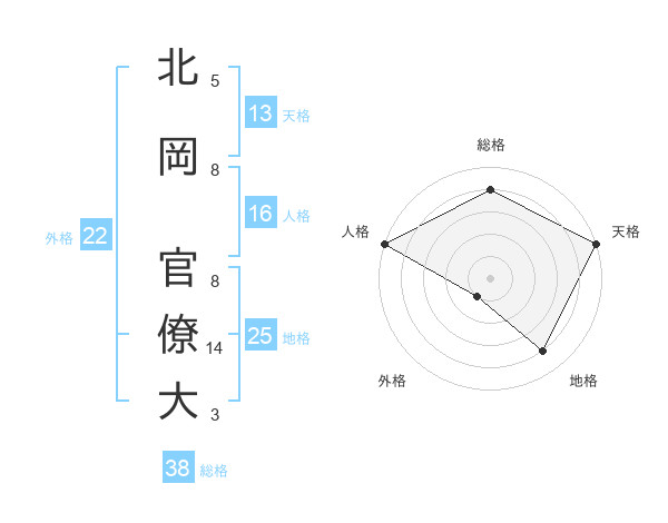 北岡 官僚大さんを姓名の画数から五運を鑑定