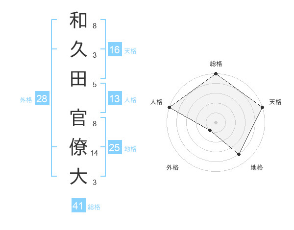 和久田 官僚大さんを姓名の画数から五運を鑑定