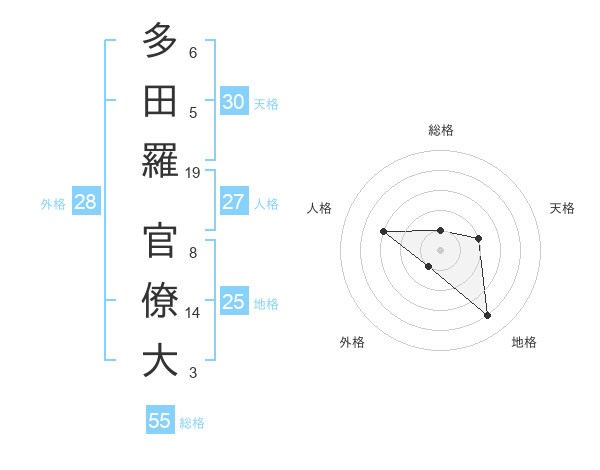 多田羅 官僚大さんを姓名の画数から五運を鑑定