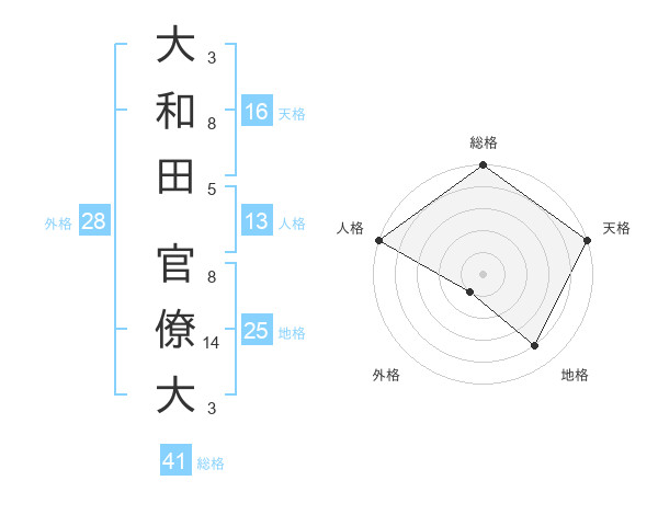 大和田 官僚大さんを姓名の画数から五運を鑑定