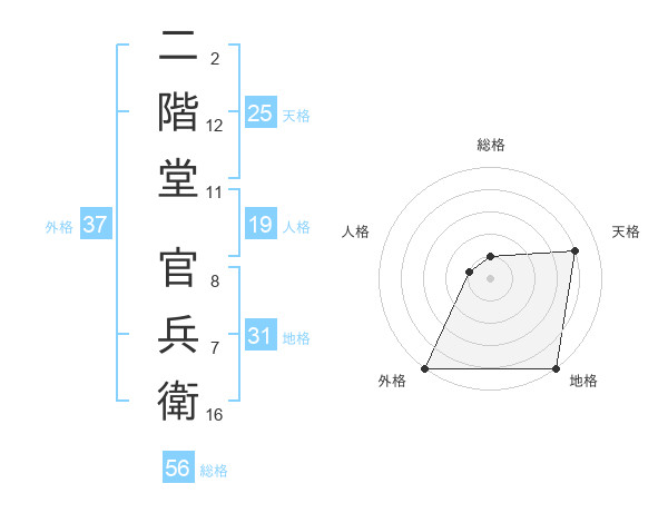 二階堂 官兵衛さんを姓名の画数から五運を鑑定